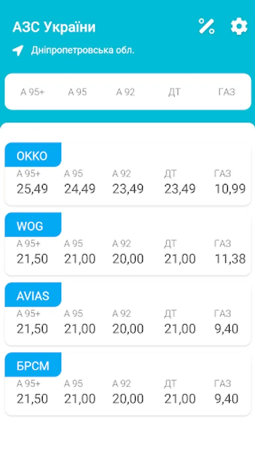 - all 24 regions including such gas stations as Shell, BRSM, OKKO, WOG,