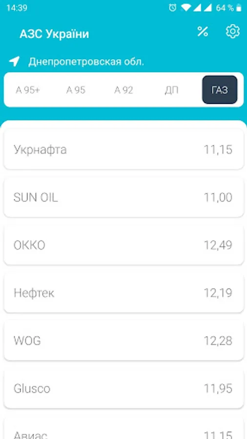 - only we have all filling stations with prices for gasoline, diesel and gas
