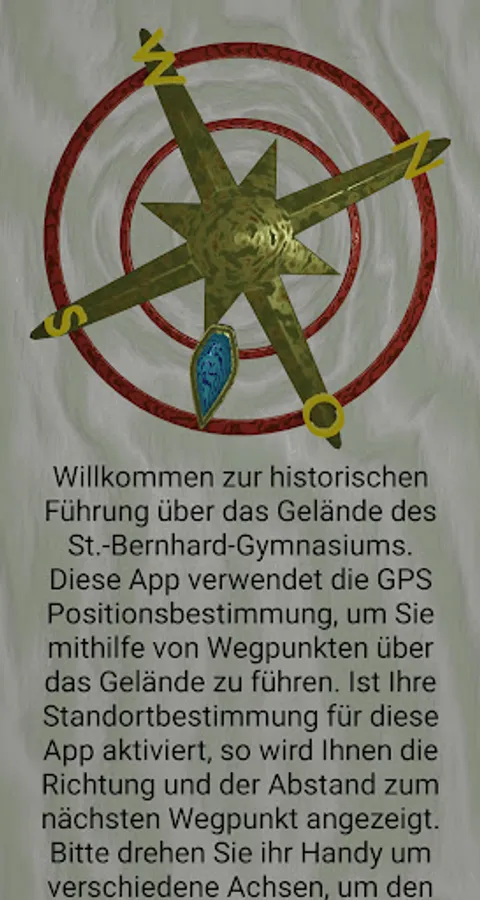 With this APP you will experience a GPS-supported tour through the history of the St.-Bernhard-Gymnasium and its premises. You can choose the epochs and the depth of information according to your interests.