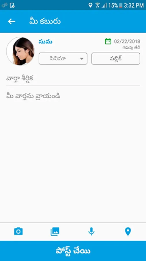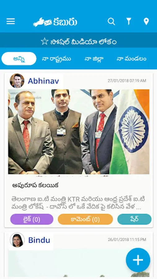 This is a social news app for the Telugu language speaking people in the states of Andhra Pradesh and Telangana in India. The content is generated by people, likes, reviews, comments.