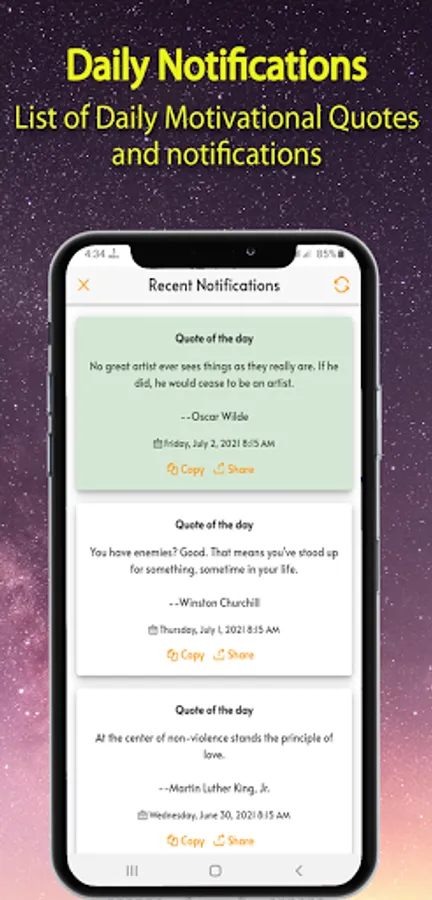 Spread the positive vibes by sharing your favorite quotes directly from the app. Share them on social media, messaging platforms, or simply brighten someone's day by sending a thoughtful quote.