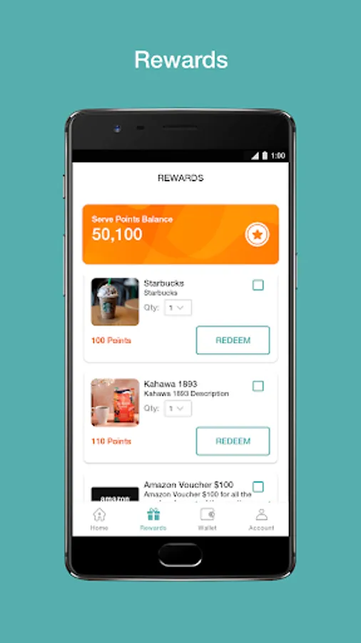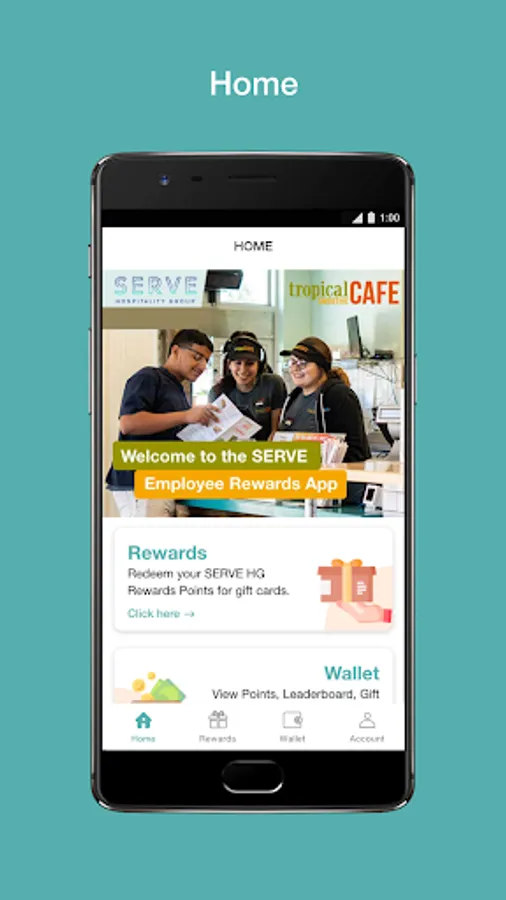 SERVE HG Employee Loyalty App, earn points for being an employee and redeem for rewards.