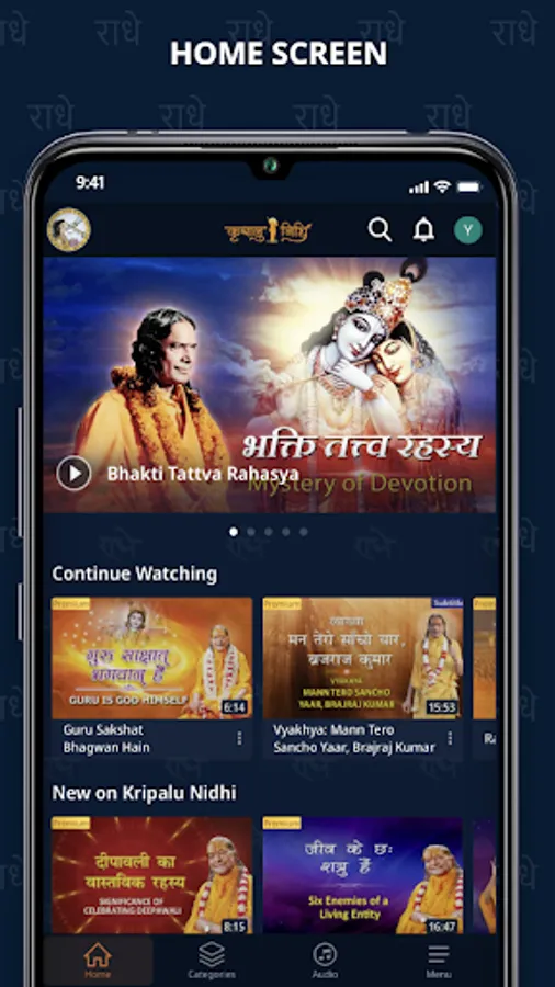By the grace of Jagadguruttam Shri Kripalu Ji Maharaj, in order to deliver His extraordinary spiritual philosophy to the general public, Jagadguru Kripalu Parishat (JKP) has created the website / mobile app, “Kripalu Nidhi”. The vast entirety of Shri Maharaj Ji’s speeches, kirtans, pads, devotional couplets, and poetic explanations of devotional songs describing the Lord’s Divine Pastimes and so on have been conveniently compiled. In other words, to consolidate this priceless ocean of treasures that Jagadguru Shri Kripalu Ji Maharaj has imparted to the world, this website / mobile app has been created and accordingly named – Kripalu Nidhi.