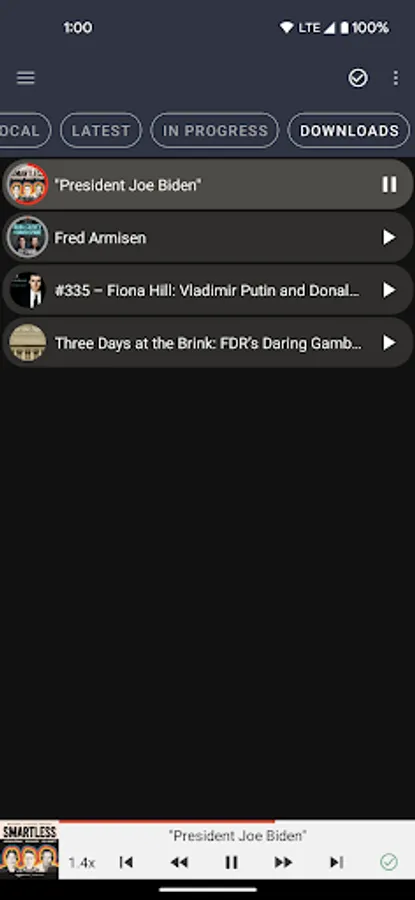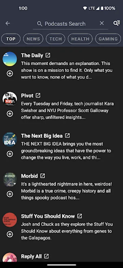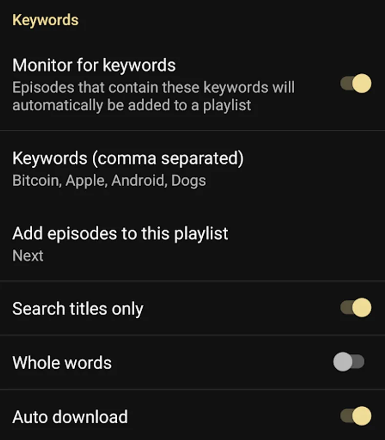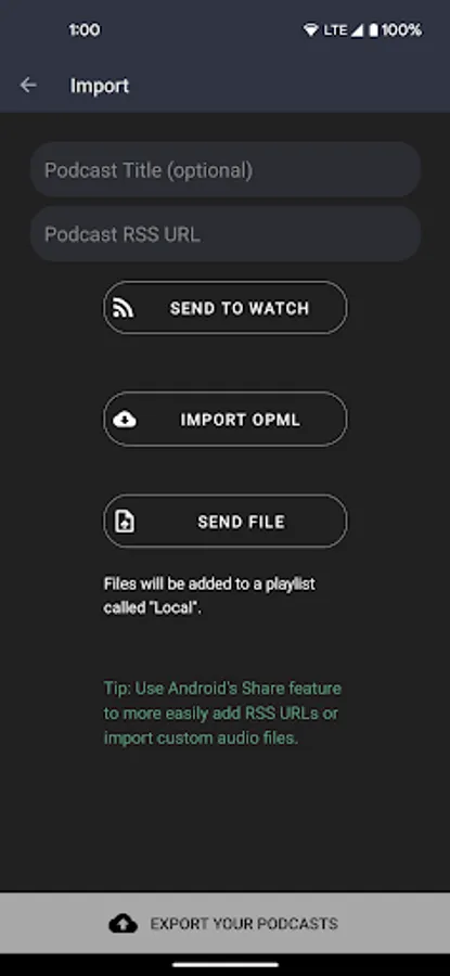 Connect Bluetooth headphones directly to your WearOS smartwatch and listen to your favorite podcasts. The phone app also supports playback with the position syncing between devices.