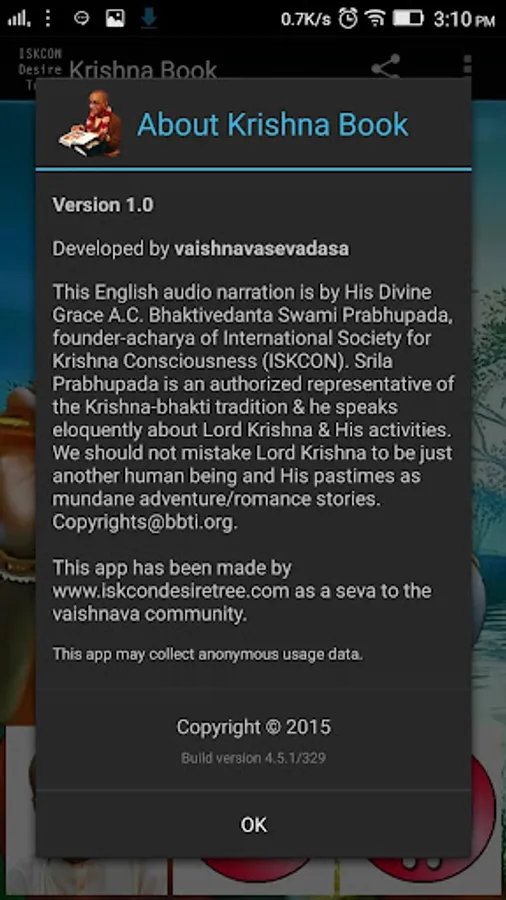 This English audio narration is by His Divine Grace A.C. Bhaktivedanta Swami Prabhupada, founder-acharya of International Society for Krishna Consciousness (ISKCON). Srila Prabhupada is an authorized representative of the Krishna-bhakti tradition & he speaks eloquently about Lord Krishna & His activities. We should not mistake Lord Krishna to be just another human being and His pastimes as mundane adventure/romance stories.