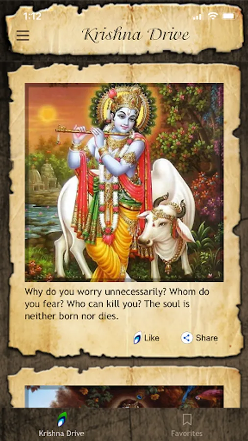 KrishnaDrive is an application with the sole objective to spread the messages of Lord Krishna. Stay connected to the glorious rhythm of the Supreme Lord by reading the divine messages from the great scriptures Srimad Bhagvad Gita and Srimad Bhavatam.