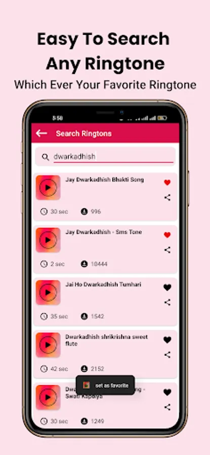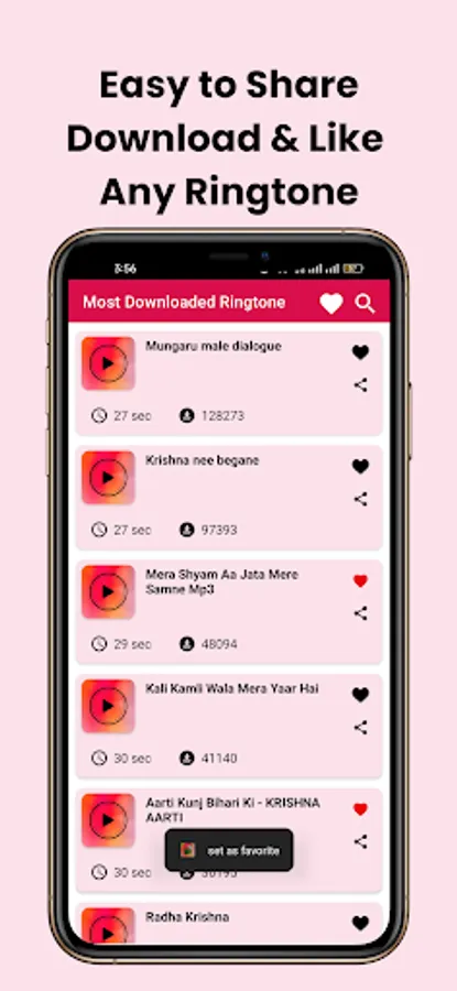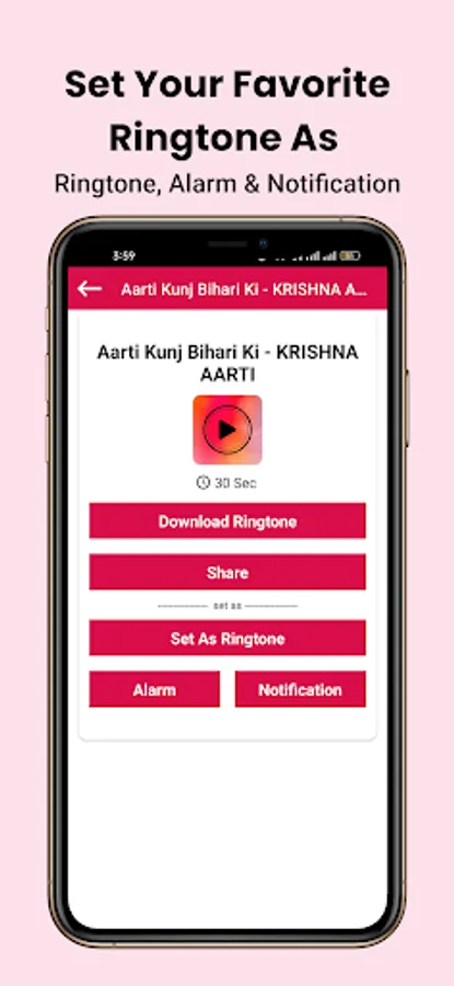 First Of all Click On Your Favorite Krishna Ringtones and Then You can see Set As Alarm, Set As Notification, Set As SMS OR Set as Call Ringtone. Just Click On Button And Your Default Ringtone Will Be Set As Your Favorite Ringtone.