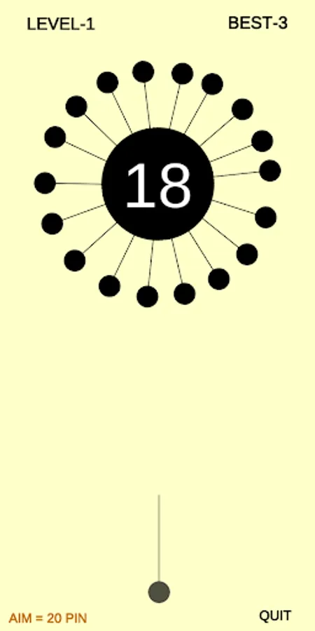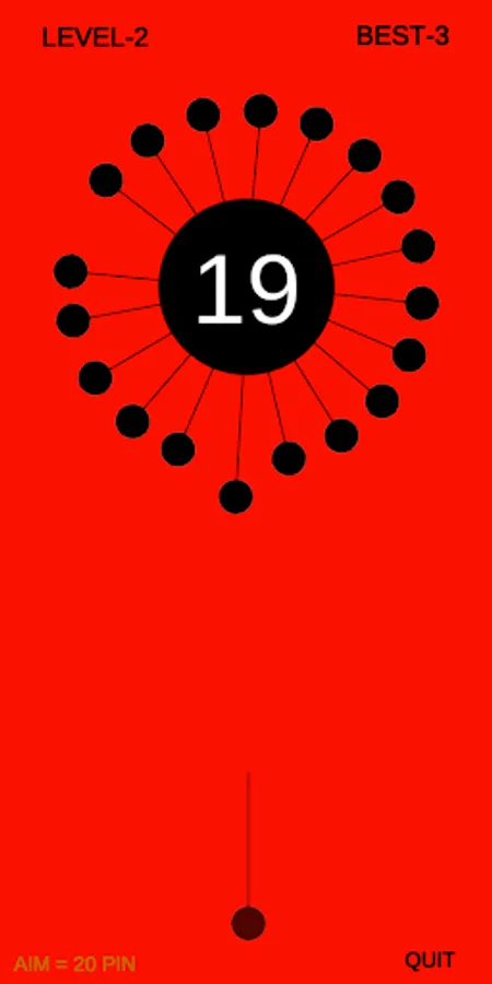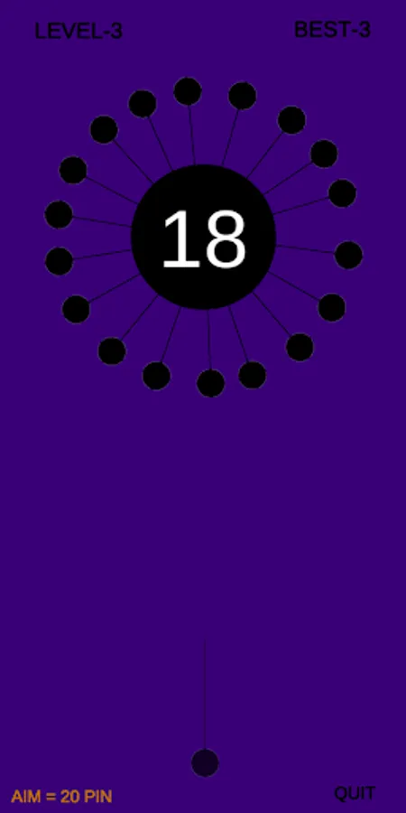 "A" is a very challenging game.It has infinite levels and after each level the tension rises and eventually increases your concentration.After each level the Colour of the game changes, testing your concentration.The aim is to pin the pin on the rotating disk which increases its speed after every level. And the major attraction is that the bgm of the game is so soothing and meditating..No annoying ads between the levels. also if you loose at any level you will be returned to LEVEL 1 !!!!!!!....So the Question is that "Can You Complete LEVEL 5?"...I believe you can ;-)