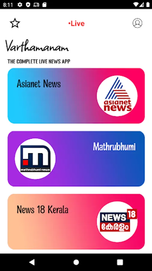 "Varthamanam" is a free malayalam live news app with your favourite malayalam channels like Asianet, Mathrubhoomi, Kairali, MediaOne, Janam etc..You can watch these channels without any buffering.There are no annoying ads in between and also they are free..No fighting for TV remote any more :).