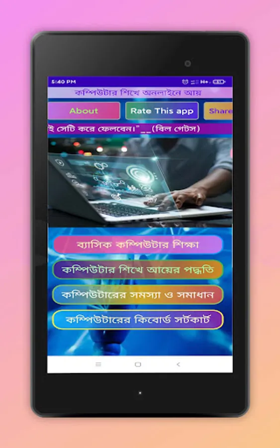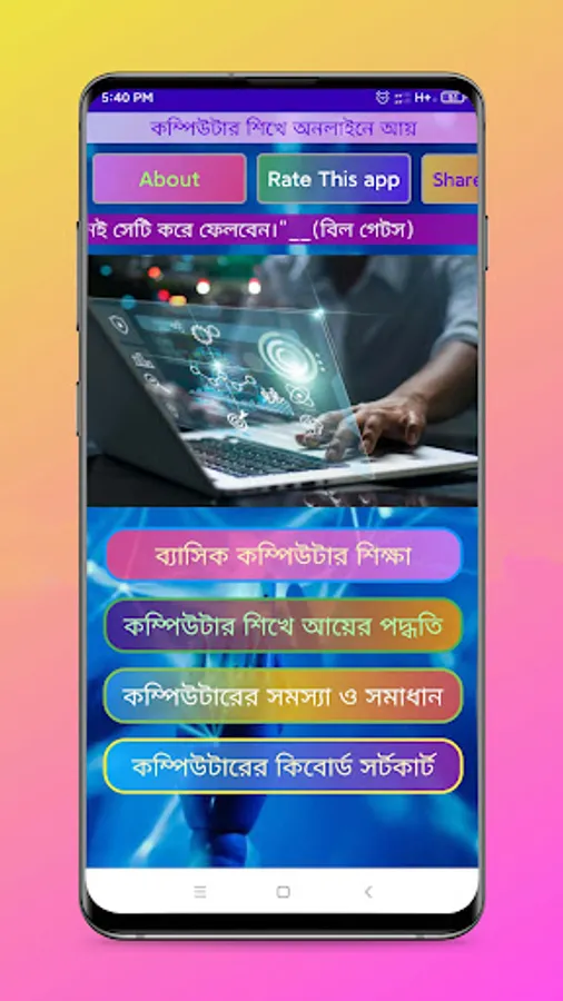 In this app I have discussed the basics of computer in detail. And the ways in which income can be earned by learning computers have also been discussed in detail.