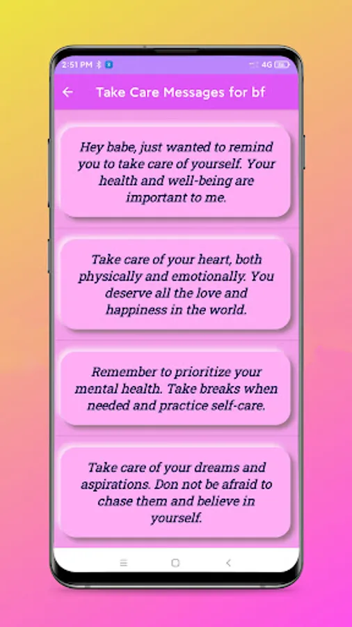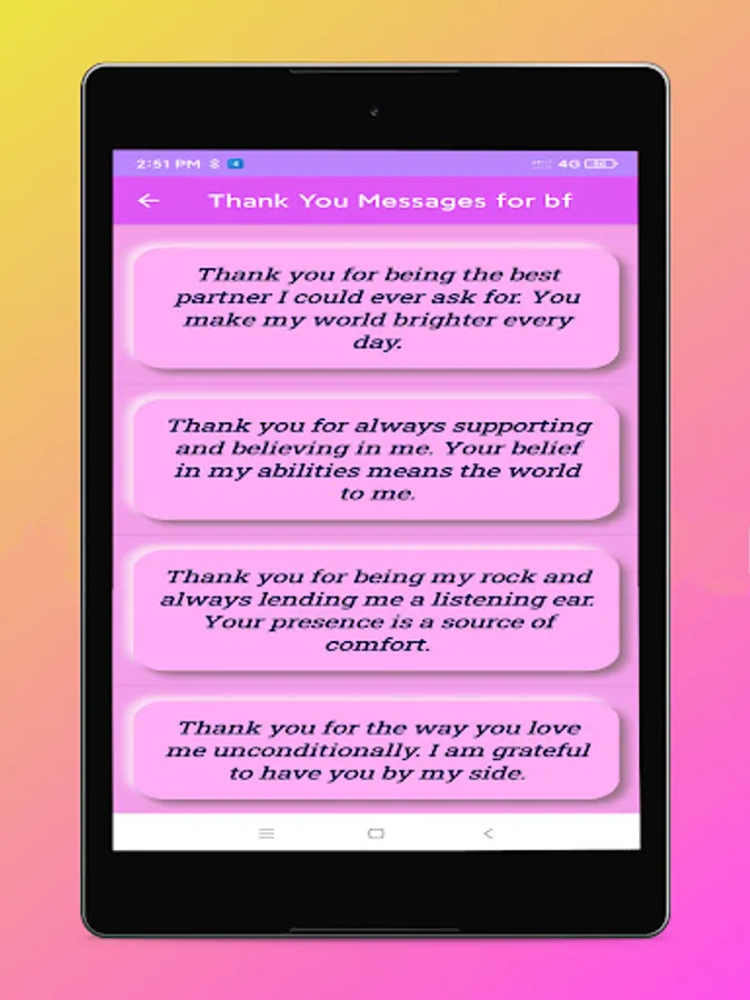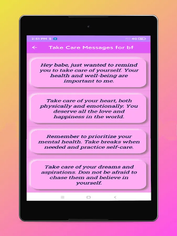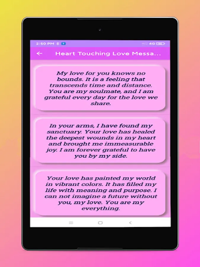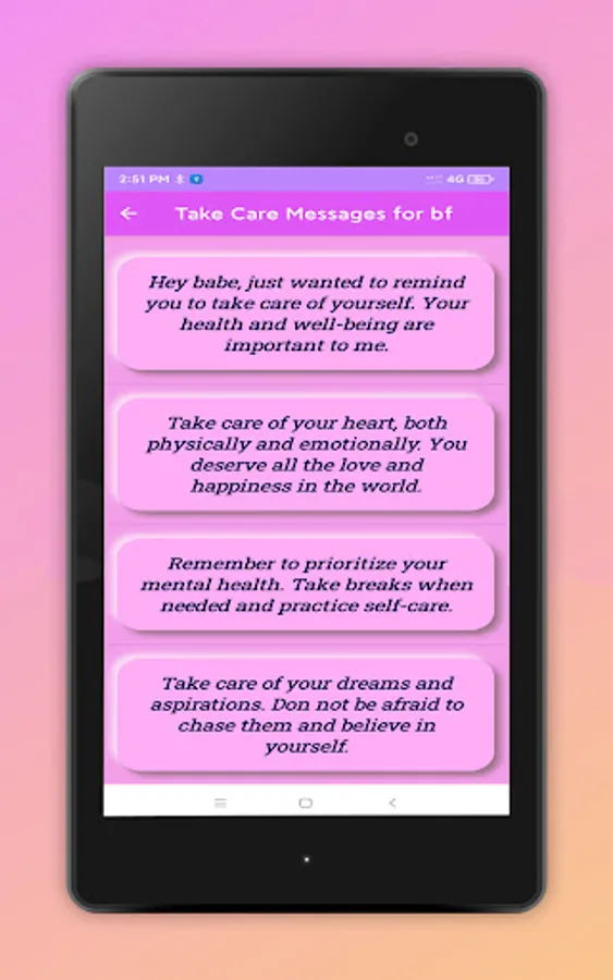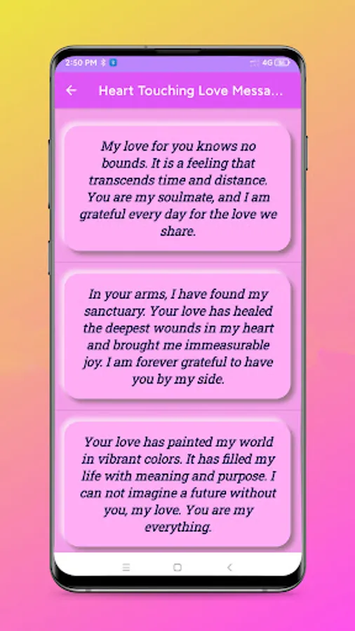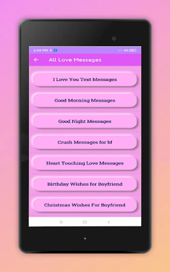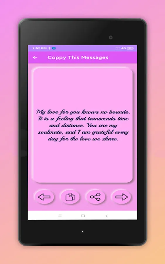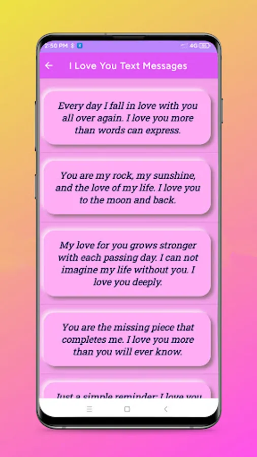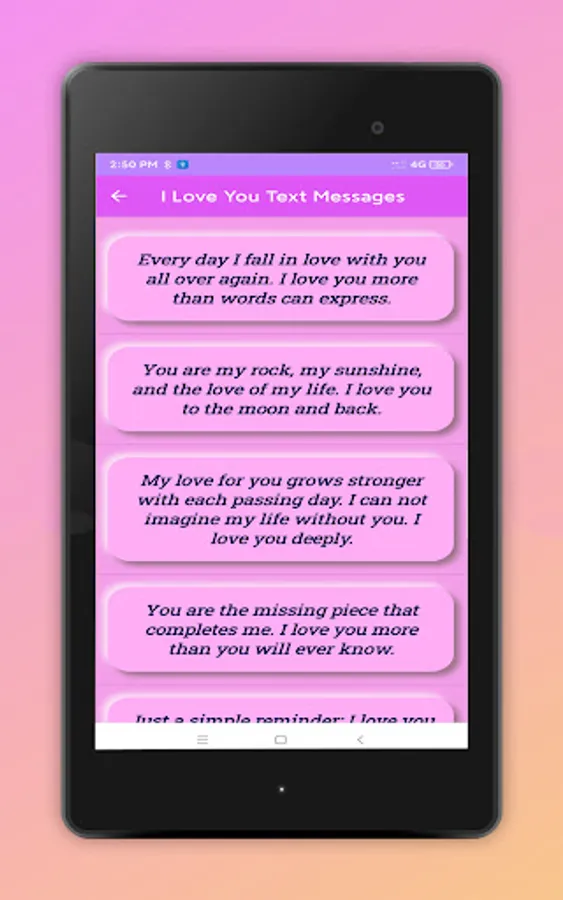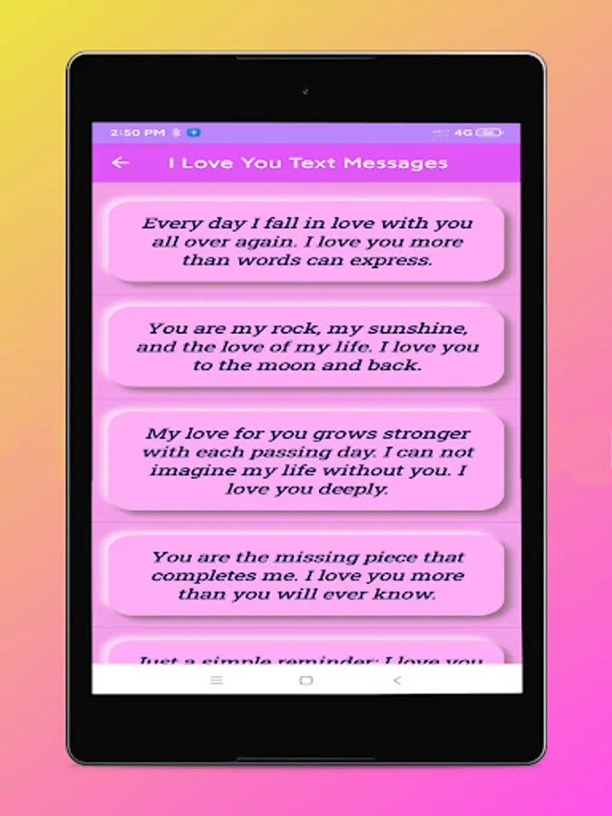 The user-friendly interface of Love Messages for Boyfriend allows you to effortlessly navigate through a variety of carefully crafted messages, ensuring that you find the perfect words to convey your deepest emotions. Each message is thoughtfully written, infused with love, and designed to make your boyfriend feel cherished and appreciated.