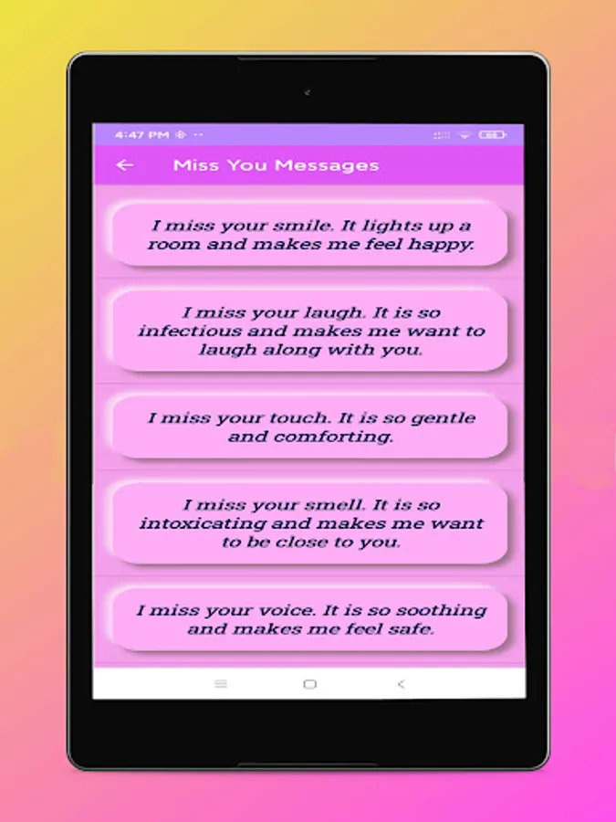 7. Miss You Love Messages for girlfriend: This App has I miss you Love Messages that can help you express how much you are missing that particular person in your life.