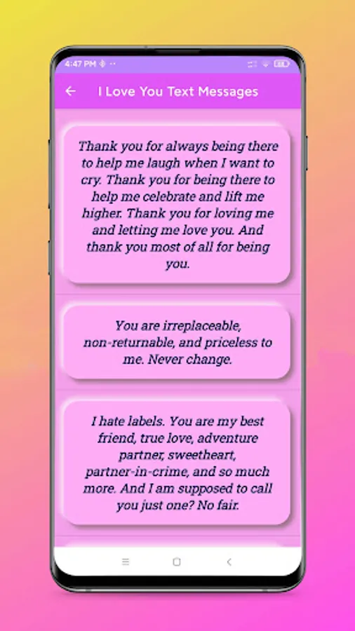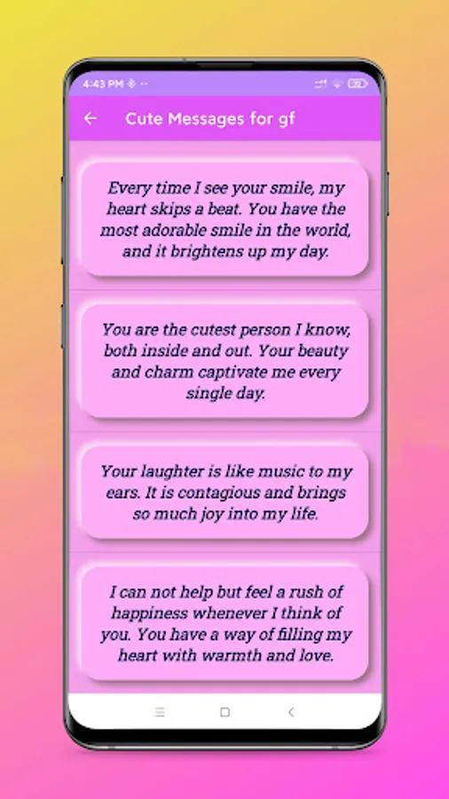 1. Vast Collection of Love Messages: The app boasts an extensive compilation of charming and thoughtful messages that cater to various aspects of love. From sweet good morning texts to passionate love letters, the app covers a wide range of emotions, ensuring that you always find the perfect words to convey your affection.