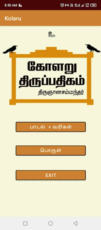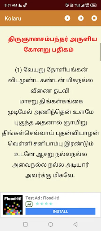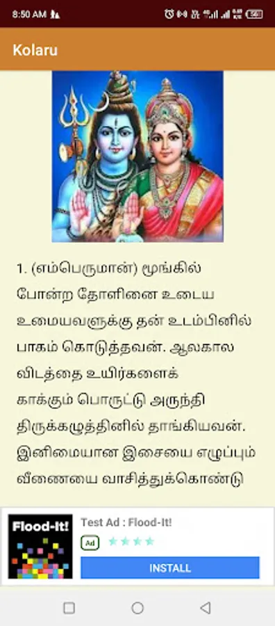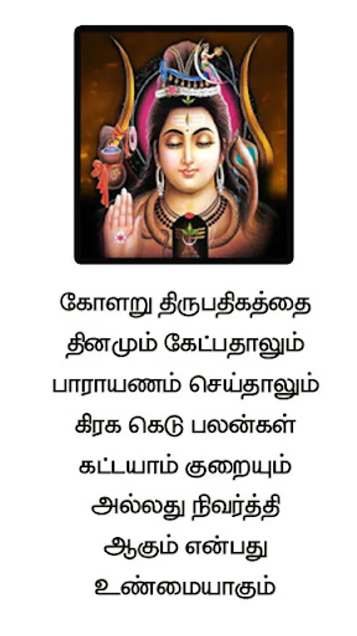 "Kolaru Pathigam" is a collection of Tamil devotional hymns written by the 9th-century Tamil saint, Thirugnana Sambandar. These hymns are known for their spiritual and philosophical significance, focusing on Lord Shiva and the path to salvation. If you're developing an app related to Kolaru Pathigam, here's a suggested app description with keywords for the Google Play Store: