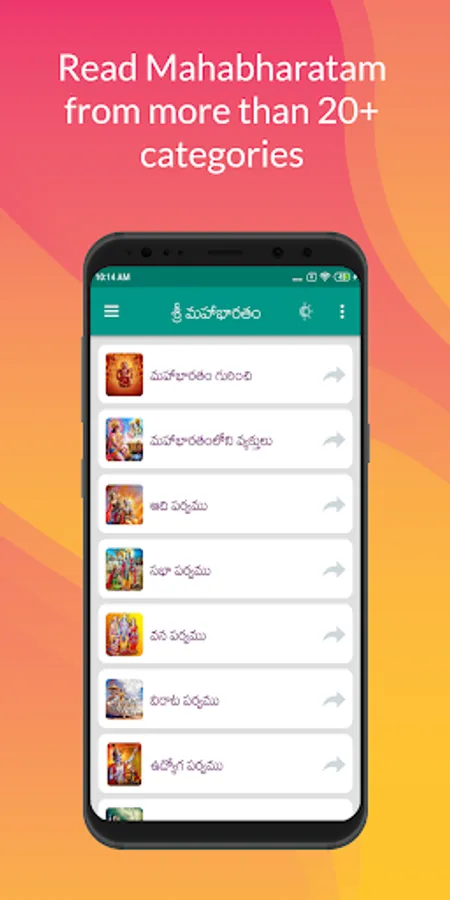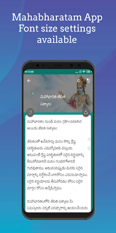 Mahabharatam app reflects the branch of Hinduism focusing on the veneration of the god with scholarly explanations.