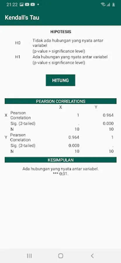This application is used to perform correlation analysis on nominal, ordinal, interval and ratio data types. The method used for nominal data types is Chi Square. The methods used for ordinal data types are Spearman's Rho and Kendall's Tau. While the method used for the interval or ratio data type is Pearson.