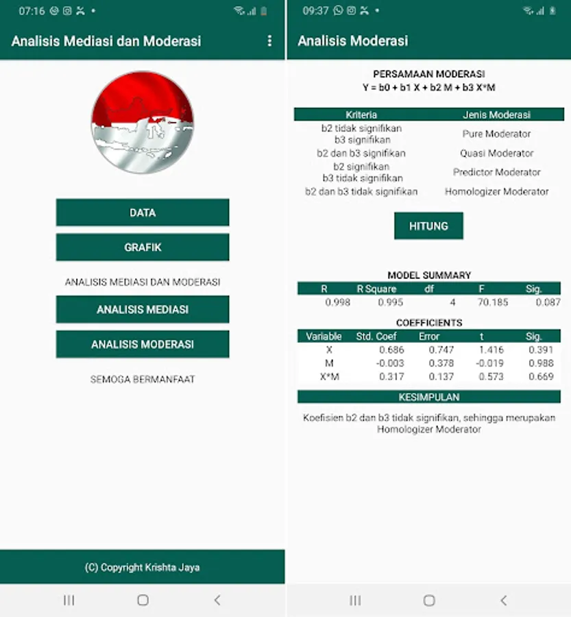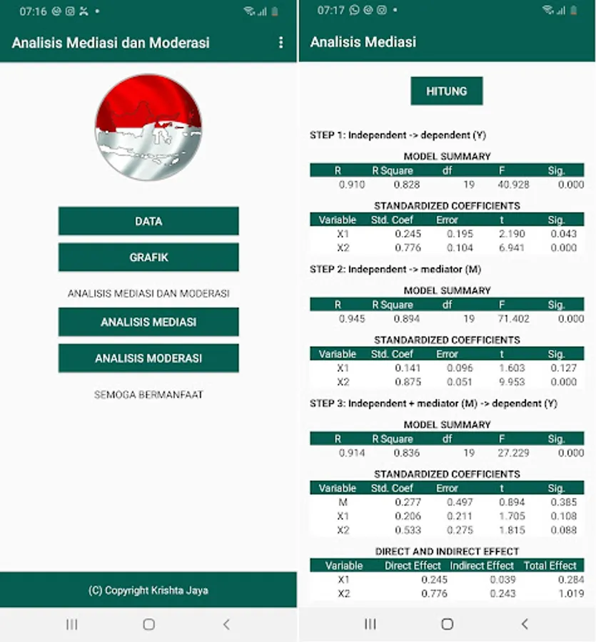 This application is used to perform mediation and moderation analysis. The analysis of mediation and moderation includes intervening variables (mediator and moderator). Mediator and moderator variables can affect the relationship between variables.