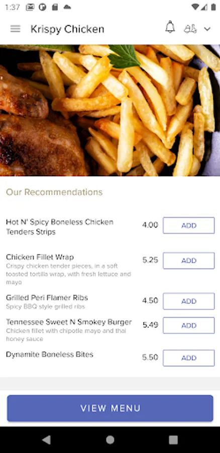 Here at Krispy Chicken, we serve a variety of food such as fried chicken, burgers and more. You can find our whole menu on our app, filled with mouth-watering dishes and catering for all kinds of different tastes!