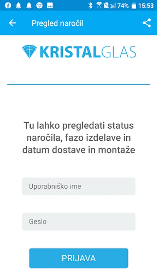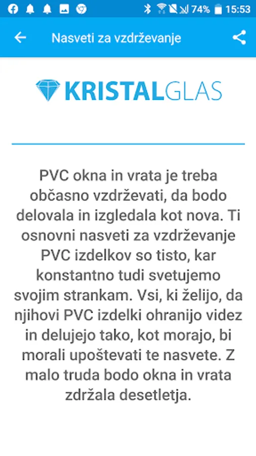Mobilna aplikacija podjetja Kristalglas, v kateri lahko pregledate ponudbo storitev ali produktov. Namen aplikacije je predstavitev podjetja in olajšati dostop do ponudbe.