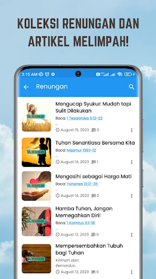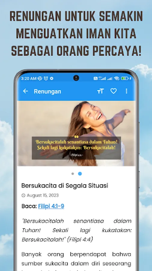 Devotional and Illustrations Christian is an application for android devices that provide various devotional christian, devotional christian, muse PSM, muse juvenile, reflections youth, sermons, stories, testimonies, paragraph gold Bible, as well as the articles of the Christian more to motivate and further grow spiritual and faith as a believer in Jesus. There are also stories of Christian humor as a distraction for you in studying the word of God.