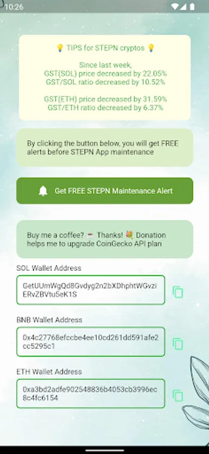 Get the real-time STEPN related cryptos swap rate (including the USD and Thai baht or many more currencies in the future) and STEPN app's maintenance hour alerts.