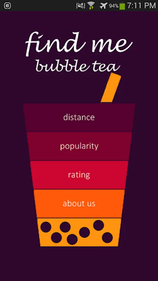 Find me some bubble tea/boba/pearl milk tea/珍珠奶茶! When you crave bubble tea/boba/pearl milk tea/珍珠奶茶, this app is all you need. Just launch the app, click on the search type, and it will find shops that sell bubble tea/boba/pearl milk tea/珍珠奶茶 either nearest to you, the best rated near you, or the most popular (best Yelp match) near you. At this time, bubble tea/boba/pearl milk tea/珍珠奶茶 finding is restricted to U.S.A. based locations only.