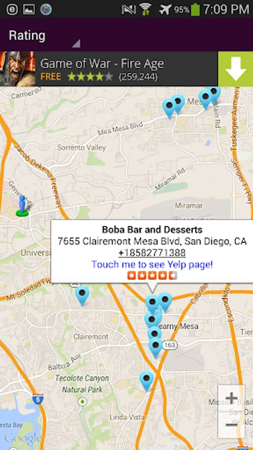 - Simple Yelp integration: For more information, and to call or get directions to the shop you want to buy bubble tea/boba/pearl milk tea/珍珠奶茶 from, just click on the information window that pops up over the location marker