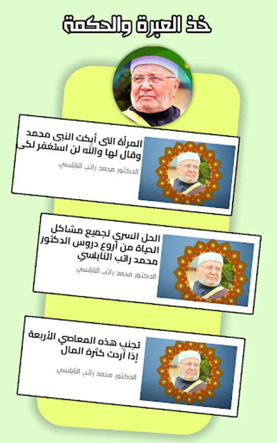 Muhammad Ratib Al-Nabulsi is one of the most famous sheikhs that Muslims search for, and he has wonderful small sermons Al-Nabulsi without the Internet, the names of God, which we have collected in an application to spread the benefit, God willing. Al-Nabulsi is considered a contemporary Syrian Islamic preacher, who has lessons and lectures in the scientific miracles and interpretation, the scientific method and knowledge. He is the head of the Qur'anic Miracles Authority, has many books and participated in many international conferences. He also gives religious lessons in mosques in Syria and other Arab countries.
