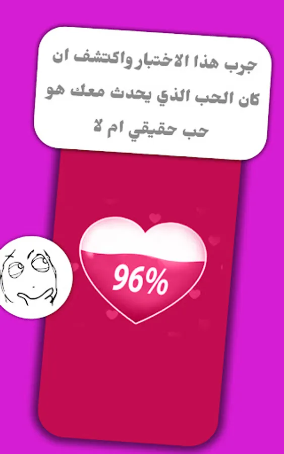 Love Test is an entertainment application through which we seek to provide a means of entertainment in a fun format. We hope that you like the application and we are ready to hear any comment from you to improve the application in the future. So your ideas and feedback will be a great support for us to develop the game to the best version, please feel free to email us: