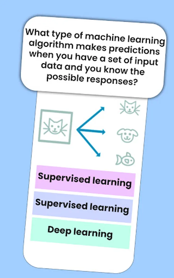 In this machine learning game quiz you’ll find many topics and questions about ML and AI related to subjects such like: