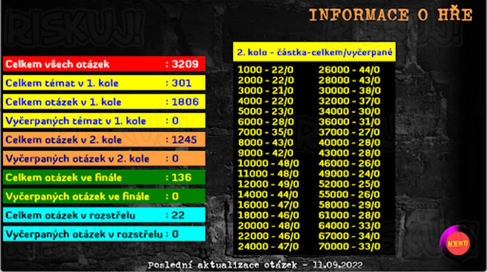 New version of quiz according to well-known TV show. Game for 1-3 players, regular updates of questions.