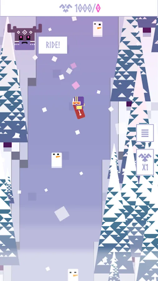 Ride along randomly generated tracks. Master the board control, based on real physics. Perform tricks, smash snowmen and become one with the Great Spirit of the Mountains!