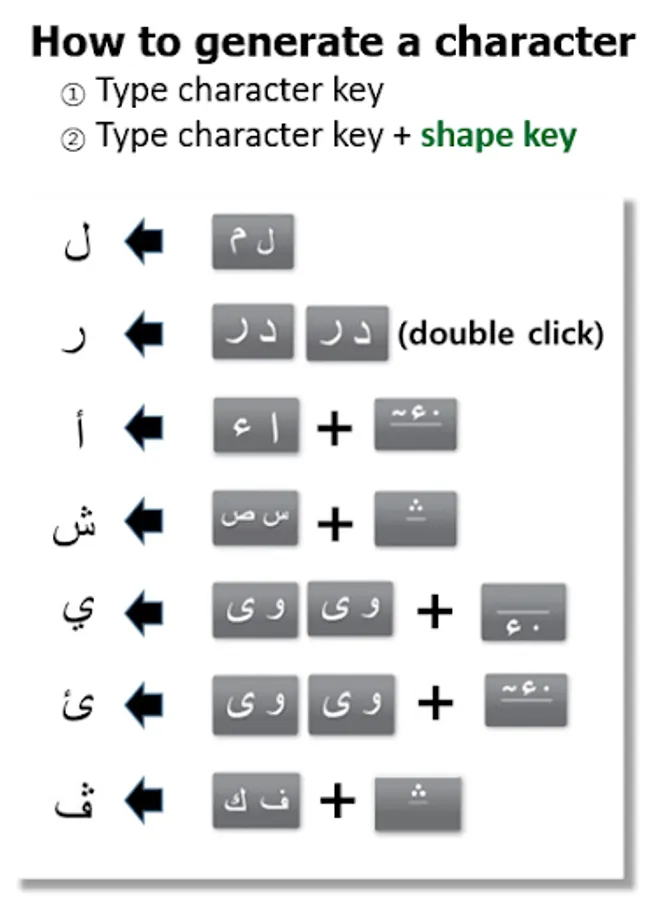 With 23 keys, you can generate all Arabic letters with fewer strokes. The FAST Arabic keyboard supplies large, comfortable, error-free big size keypads and simple layout to deliver easy, fast and accurate typing experience to our valuable customers.