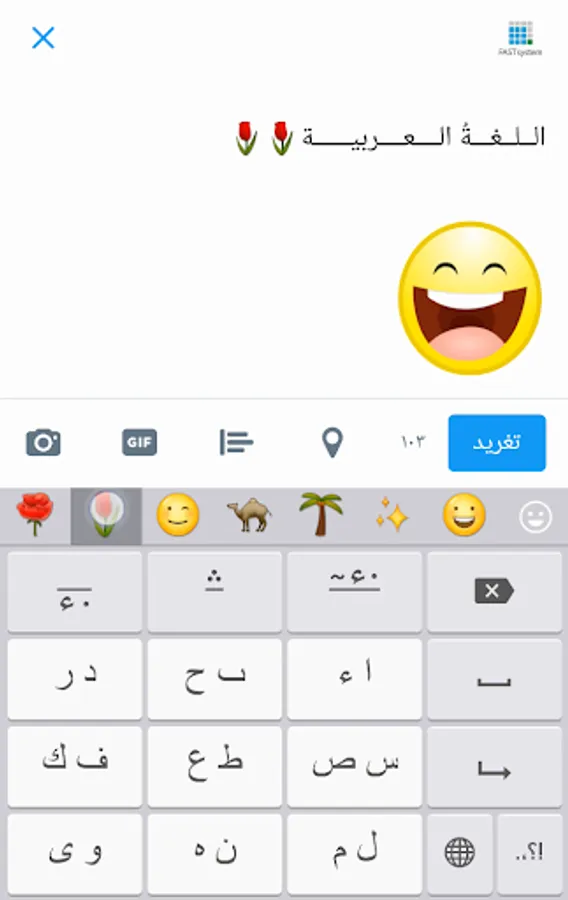 The FAST Arabic keyboard allows you to insert emoticons directly without exiting, and Emoji keyboard features learn and predict your favorite emoticons. You can even create and save your own emoticon table to quickly insert emoticons in your text.