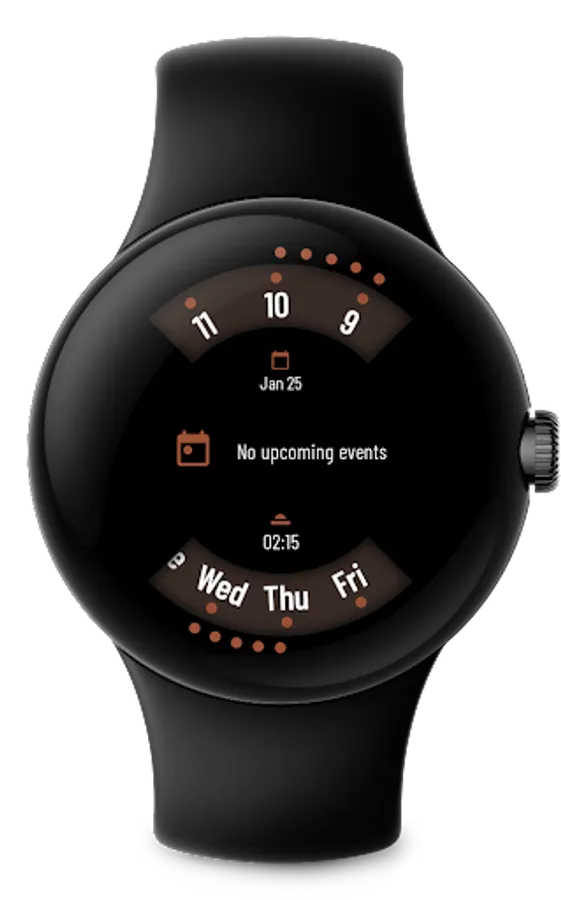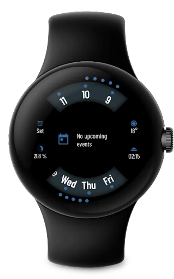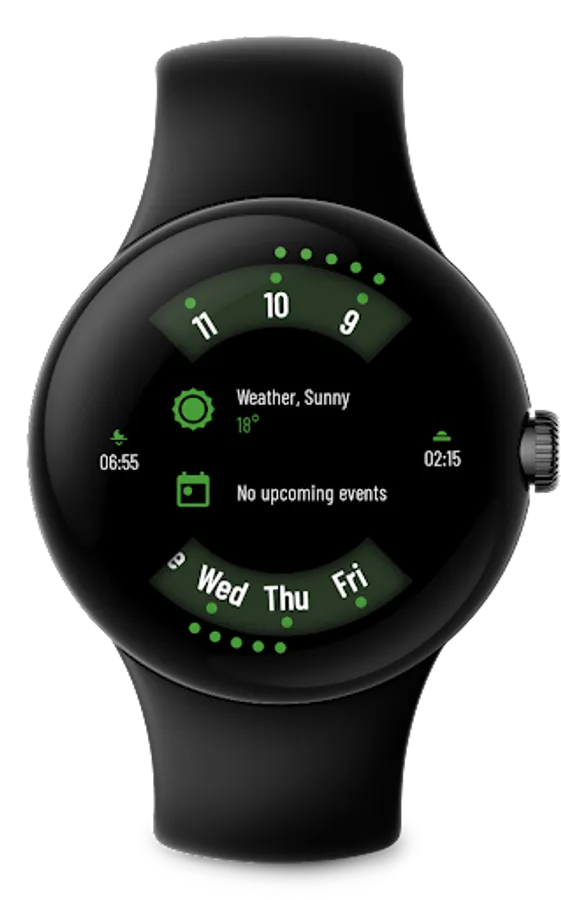 • supported complication types: RANGED_VALUE, SHORT_TEXT, MONOCHROMATIC_IMAGE, SMALL_IMAGE, LONG_TEXT