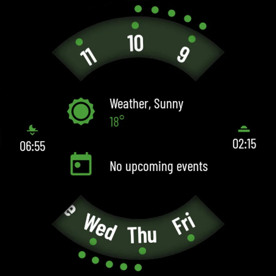 We present you a unique Watchface with many customization options and complication support. You can add up to five complications, depending on your selected layout.