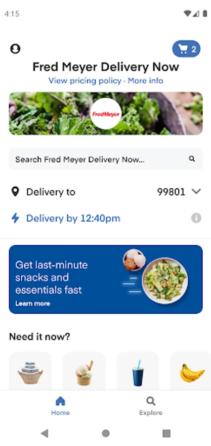 Woke up and realized you didn't have coffee? Sat down for the big game to find you didn't have any chips and salsa? Forgot eggs for your dinner recipe? Now you can get all your fresh favorites and more delivered with the Fred Meyer Delivery Now app in as little as 30 minutes.