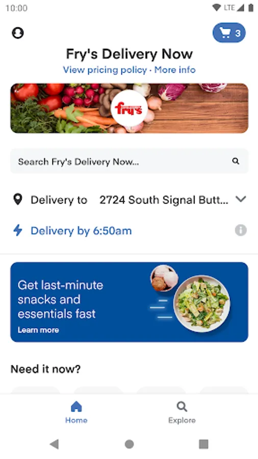 Woke up and realized you didn't have coffee? Sat down for the big game to find you didn't have any chips and salsa? Forgot eggs for your dinner recipe? Now you can get all your fresh favorites and more delivered with the Fry's Delivery Now app in as little as 30 minutes.