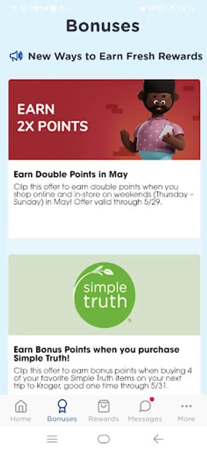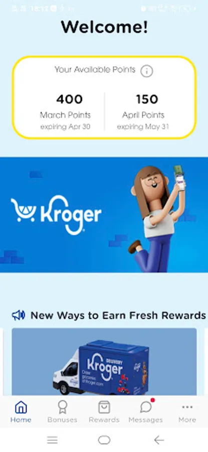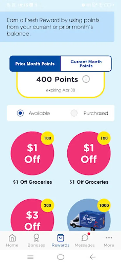 2. Earn 1 point for every dollar spent on groceries and general merchandise when you shop Kroger.