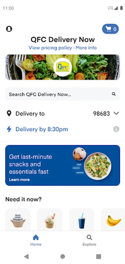 Woke up and realized you didn't have coffee? Sat down for the big game to find you didn't have any chips and salsa? Forgot eggs for your dinner recipe? Now you can get all your fresh favorites and more delivered with the QFC Delivery Now app in as little as 30 minutes.