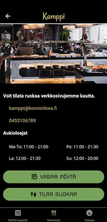 In the app, you can collect tokens when you eat at the Konnichiwa buffet. In addition, you will find information on all restaurants, table reservations and takeaway orders.