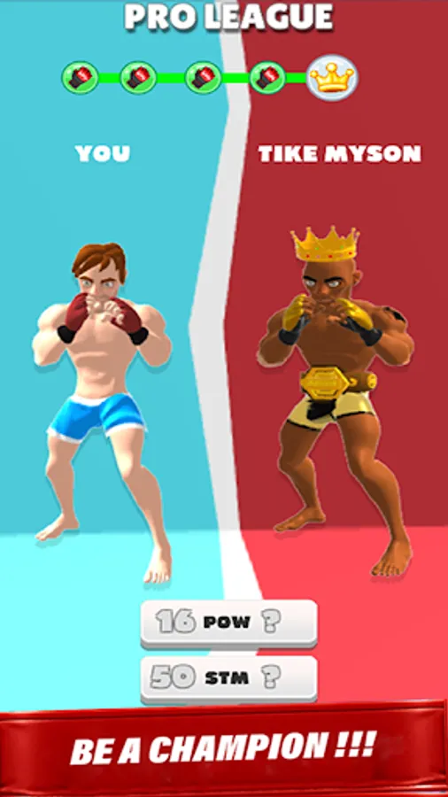 There are no weak street fighters in this sports game. Tap “Fight” and check the power and stamina of your opponent. If his results are higher than yours go back to the gym and improve your skills.