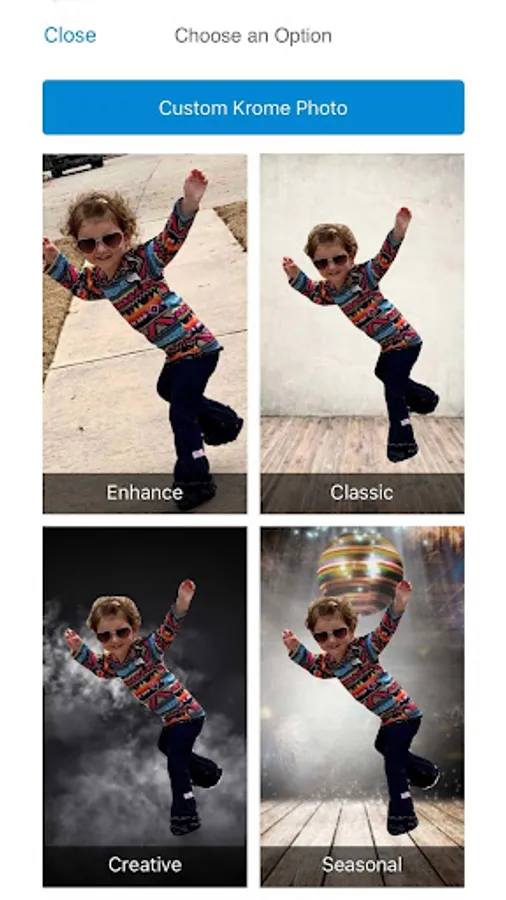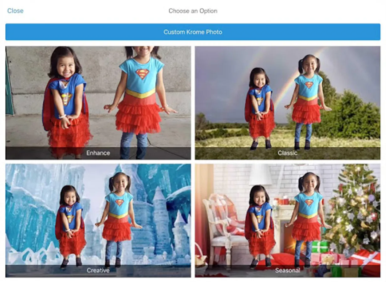 Krome Studio is a unique and fun photo editing solution to get a perfect image from any snapshot. Go for it and preview thousands of design ideas right on the app, then download your preview image FREE!