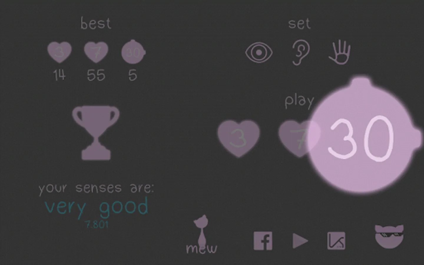 → Both audio, vibration and visual effects, when disabled, lower the penalty for disastrous gameplays. The fewer senses you use to play, the easier it is to maintain your senses' rank.