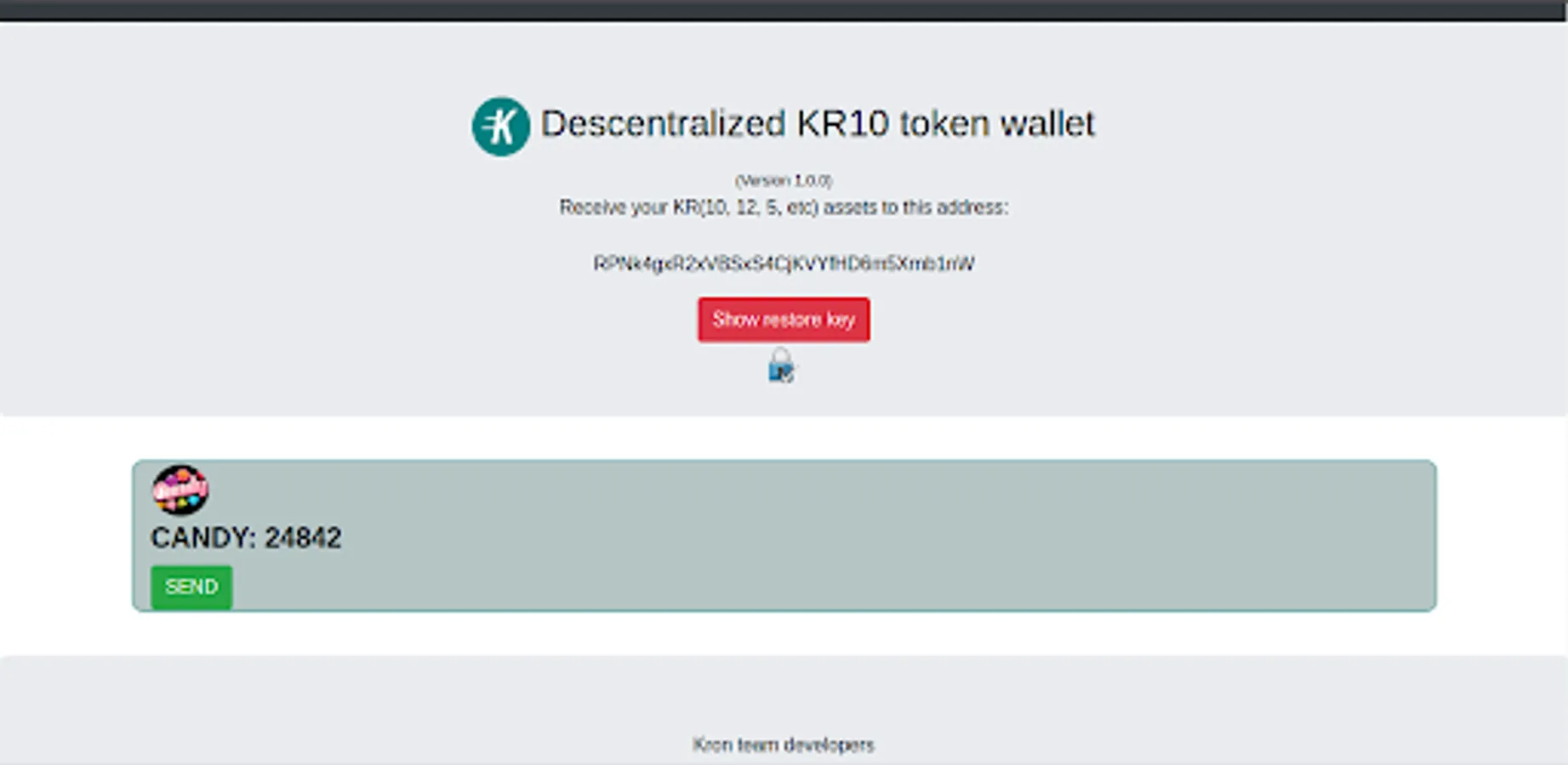 This app is a decentralized asset wallet for Kron blockchain, it allows you to receive and send any kron based asset. Just generate a new restore key or restore your previous wallet. Save restore key into a safe place.