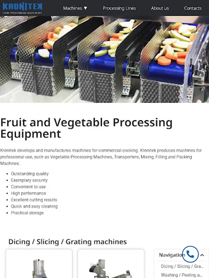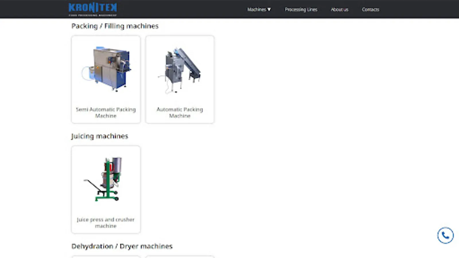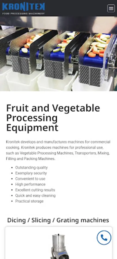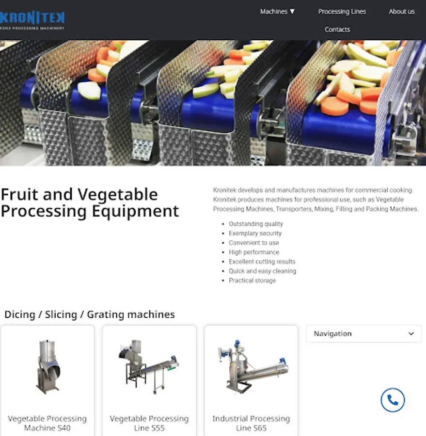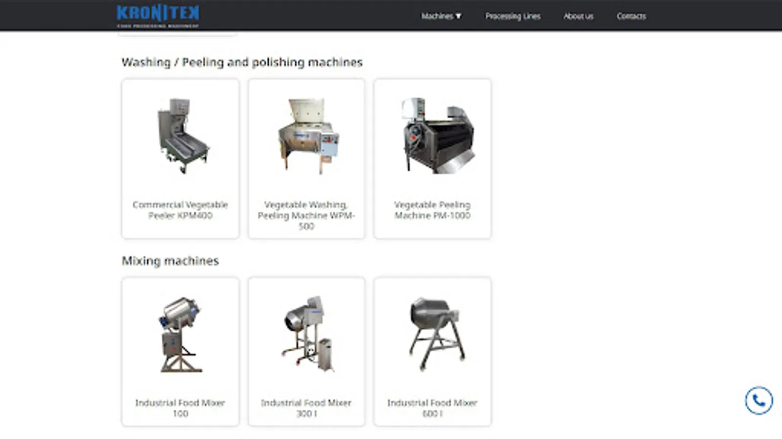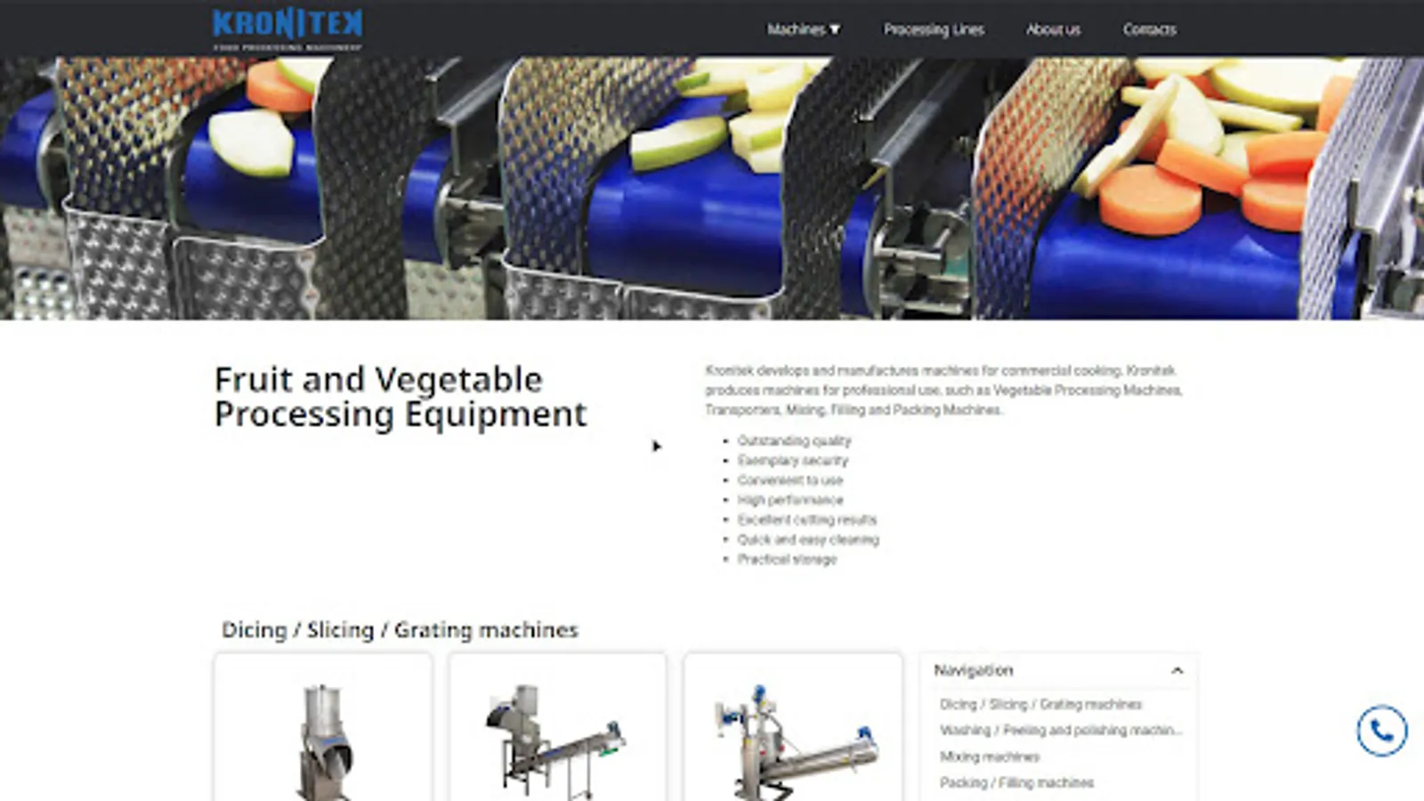 Kronitek manufactures machines for professional use, such as fruit and vegetable processing machines, conveyors, mixing, filling and packaging machines. Develops and manufactures machines for commercial cooking and food preparation.