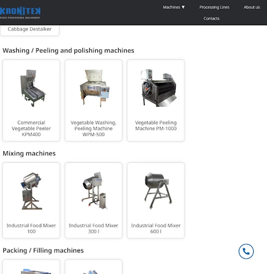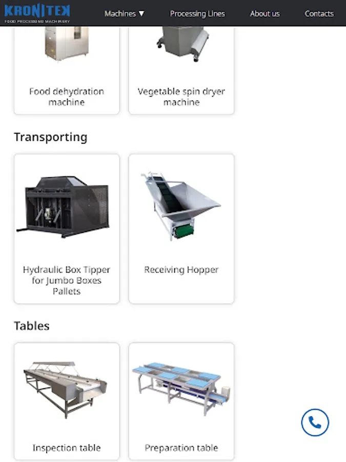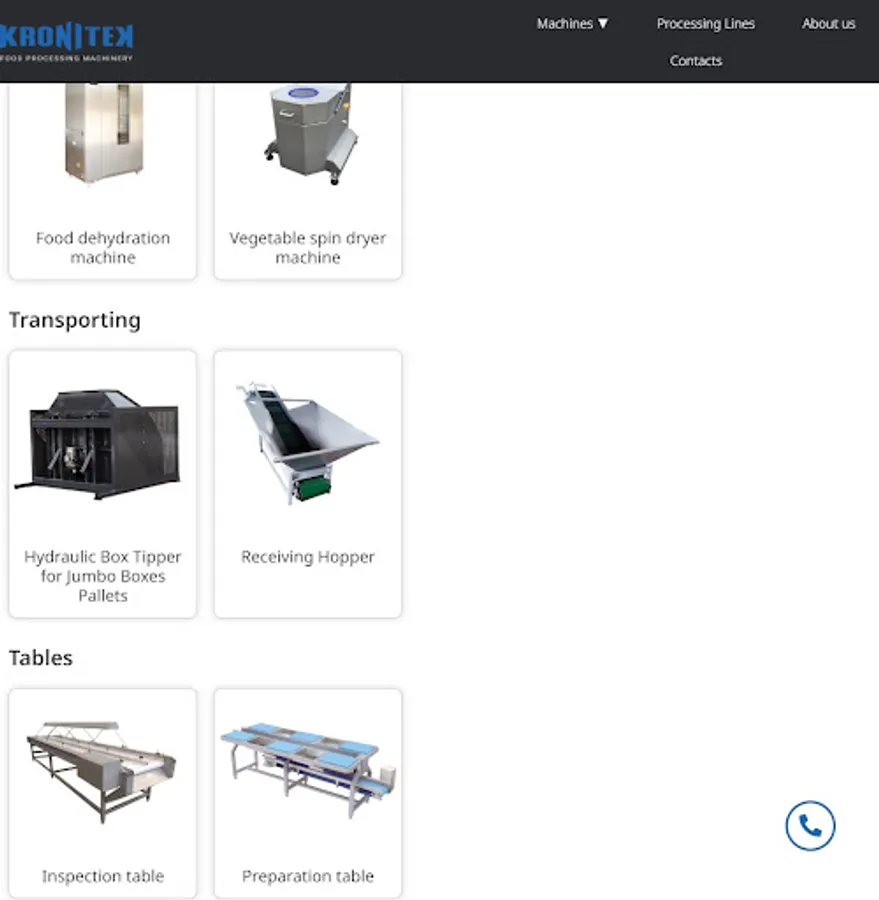 Kronitek manufactures machines for professional use, such as fruit and vegetable processing machines, conveyors, mixing, filling and packaging machines. Check out our complete catalog of our food processing machines - https://kronitek.com/machines/
