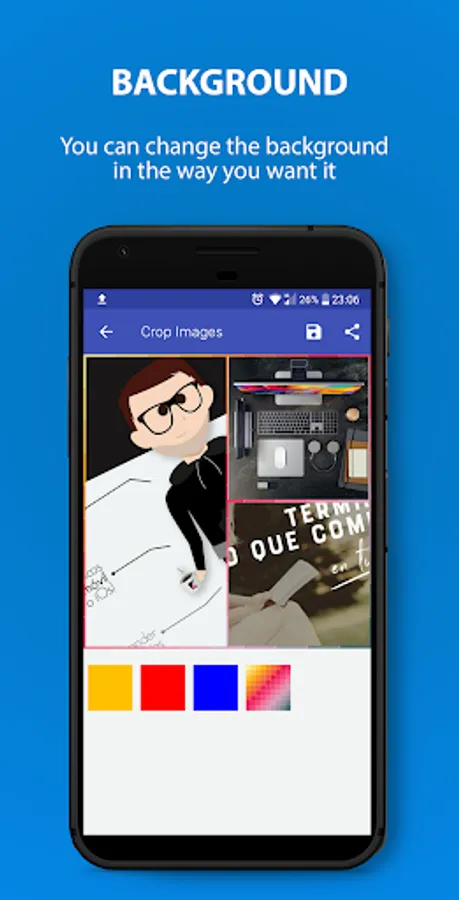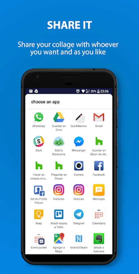 With this app edit your photos it will not be a problem anymore. Mix your family pics, or your reunions with your friends, create the most beautiful designs making a collage of all your pics. Forget all the problems with the size of your photos to upload it to your social networks. You can be an artist now. Try it.