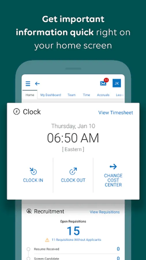 Whether you’re on a job site, on the road, at home, or simply on the move, you can get to what you need right from your mobile device. Clock in or out of a shift, check your pay, request time off, enroll in benefits, or handle any other similar tasks in moments.