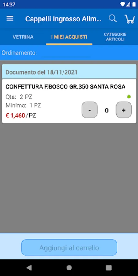 Place orders directly at Cappelli from the comfort of your Android device. Keep up to date on our unmissable offers and timed promotions. You will also be able to check the fulfillment and delivery status of your orders and keep track of your order history.